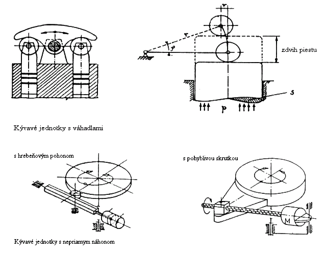 - hydraulický pohon (značné sily pri malých rozmeroch, plynulé riadenie pracovných rýchlostí, bezpečnosť pri preťažení)