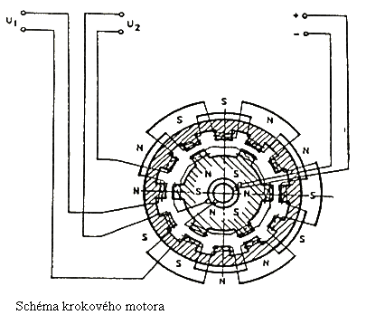 rotor tak, aby došlo k maximálnemu magnetickému toku. Rotor je z magneticky mäkkého materiálu, šírka pólov je 0,5mm → 720 krokov na