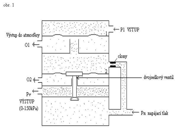 - membrány 1 a 2 rovnako menia svoju polohu vzhľadom na vstupný tlak a zabezpečujú prenos vstupného signálu na výstup s rovnakým časovým priebehom