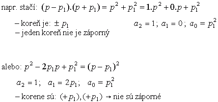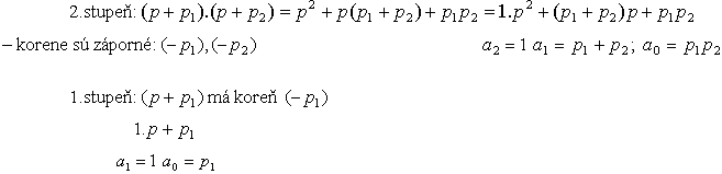 c.) ak je charakteristický polynóm vyšší než 2. stupňa a ak sú všetky koeficienty kladné, potom nemožno priamo rozhodnúť o stabilite alebo nestabilite. Treba korene buď vypočítať alebo použiť kritérium stability, podľa ktorého možno určiť, či všetky korene charakteristického polynómu ležia v ľavej polrovine komplexnej roviny.