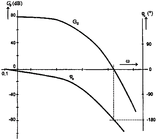 Obr. 5.13. Frekvenčná charakteristika obvodu na medzi stability v logaritmických súradniciach