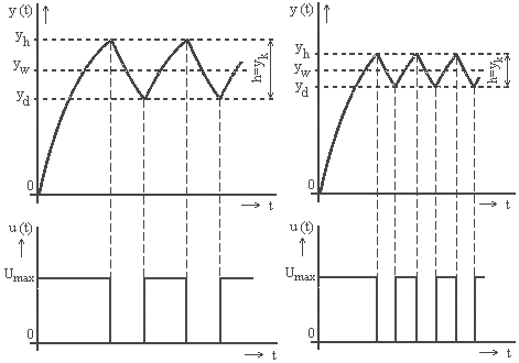 Obr. 5.23. Zvýšenie kvality regulácie zmenšením hysterézy