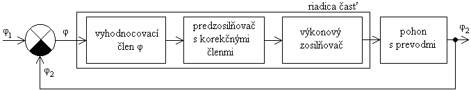 Obr. 5.37. Bloková schéma regulačného obvodu (a) a servomechanizmu (b)