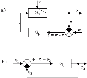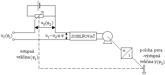 U servomechanizmov v porovnaní z regulačným obvodom (obr. 5.37.) nerozlišujeme regulovanú sústavu a regulátor nesleduje sa u neho vplyv poruchových veličín. Výstupná veličina φ2 zodpovedá regulovanej veličine y a vstupná veličina φ1 žiadanej veličine w. Odchýlke servomechanizmov φ = φ1 – φ2 zodpovedá regulačná odchýlka e = w-y klasického regulačného obvodu. Z uvedeného je zrejmá analógia servomechanizmu a regulačného obvodu.