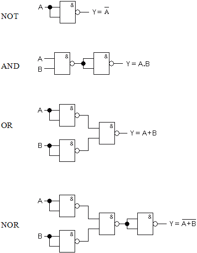 NAND tvorí úplný súbor funkcií, lebo NAND-om je možné realizovať ľubovoľnú kombinačnú logickú funkciu: