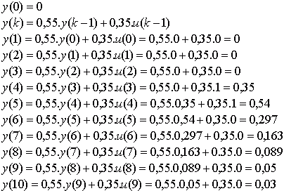 Popisuje aké budú hodnoty výstupného signálu y(k) v okamihoch k= 1,2,3,....