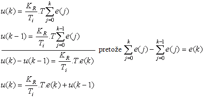 Výhodou prírastkových algoritmov je, že pri prestavovaní parametrov regulátora v prevádzke ich ovplyvňujú prírastky akčných veličín.