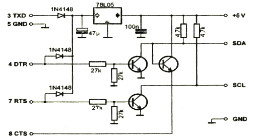 - je potrebné rozhranie na prispôsobenie zbernice I2C na úroveň signálov RS232.
