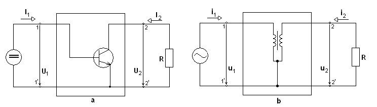 Obr. 8 Dvojbrány. Veľké písmená označujú jednosmerné hodnoty, malé písmená striedavé hodnoty.