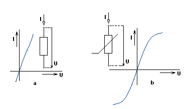 Obr. 13 Charakteristika odporovej jednobrány a) lineárnej, b) nelineárnej