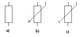 Obr. 15 a) pevné, b) nastaviteľné, c) trimre