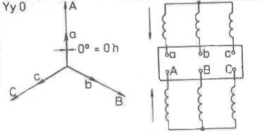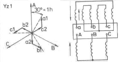 Zapojenie Yz: používa sa do výkonu transformátorov 315 kVA (400 kVA), ktoré napájajú sekundárne siete nn s nesúmerným zaťažením nulového vodiča nad 20 % menovitého prúdu.