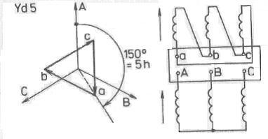 Zapojenie Yd: nepotrebuje vyrovnávacie vinutie. Je výhodné pre najväčšie transformátorové jednotky v elektrizačnej sústave.
