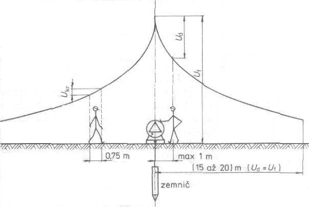Grafické znázornenie priebehu elektrického potenciálu v okolí uzemňovača: |