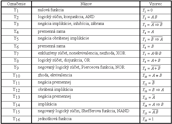 Tab. 6.2.b Prehľad všetkých logických funkcií