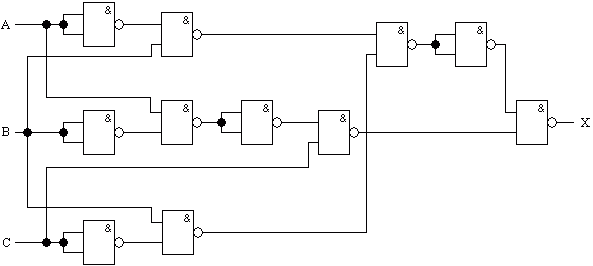 NAND tvorí úplný súbor funkcií, lebo NAND-om je možné realizovať ľubovoľnú kombinačnú logickú funkciu: