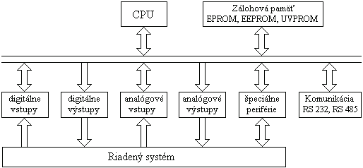 Definícia: PLC je číslicovo pracujúci elektronický systém konštruovaný pre použitie v priemyslovom prostredí, využívajúci programovateľnú pamäť pre interné ukladanie užívateľsky orientovaných inštrukcií pre prevádzanie špecifických funkcií (logických, sekvenčných, časovacích, čítacích, komunikačných, organizačných) za účelom riadenia strojov či procesov, a to prostredníctvom digitálnych alebo analógových vstupov a výstupov. Ako prog-ramovateľná riadiaca jednotka, tak periférne zariadenia sú konštruované pre jednoduché začlenenie do systémov priemyslového riadenia.