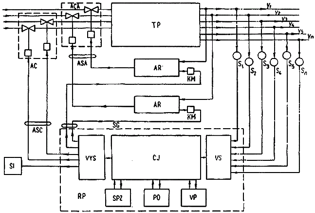 Na obr. 7.9. vidíme príklad zapojenia kombinovaného regulačného obvodu s číslicovým riadiacim systémom a analógovými regulátormi.